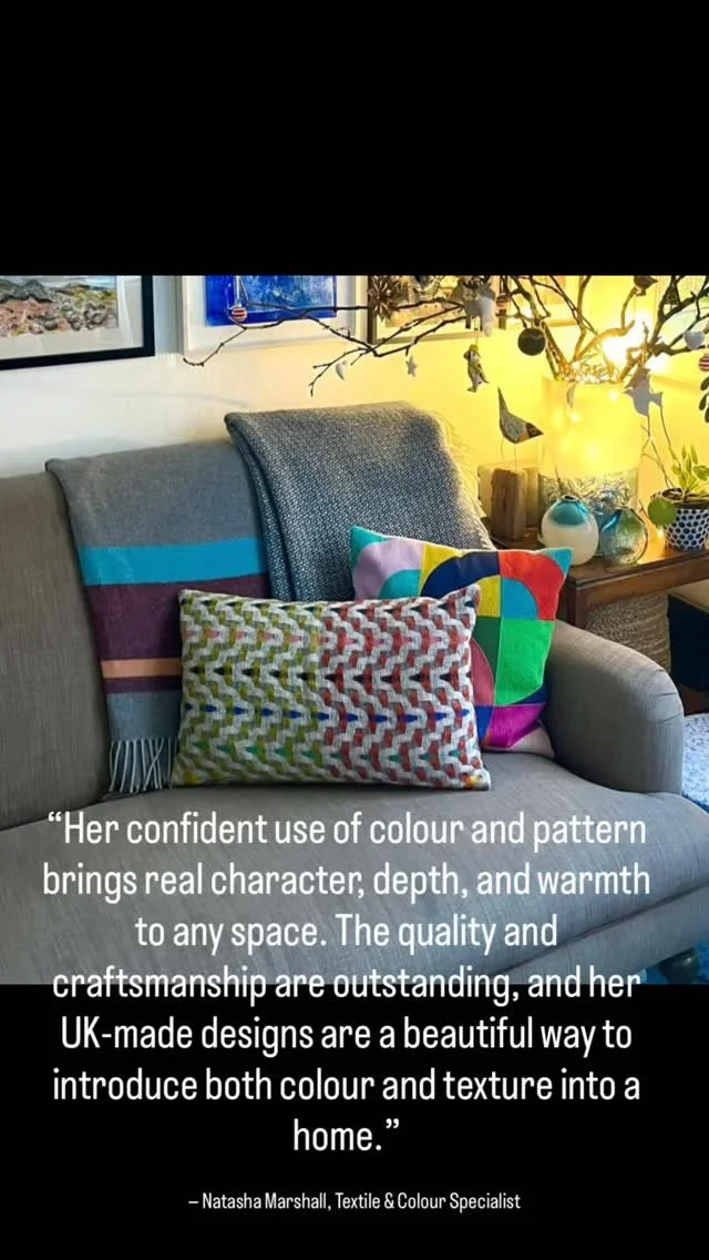 I am a multi-award-winning British woven textile designer, working with clients across the world including Made.com, Paul Smith and Designers Guild. My limited edition collection of luxury interior textiles marks my first collection sold under my own brand name, designed and made in the UK.