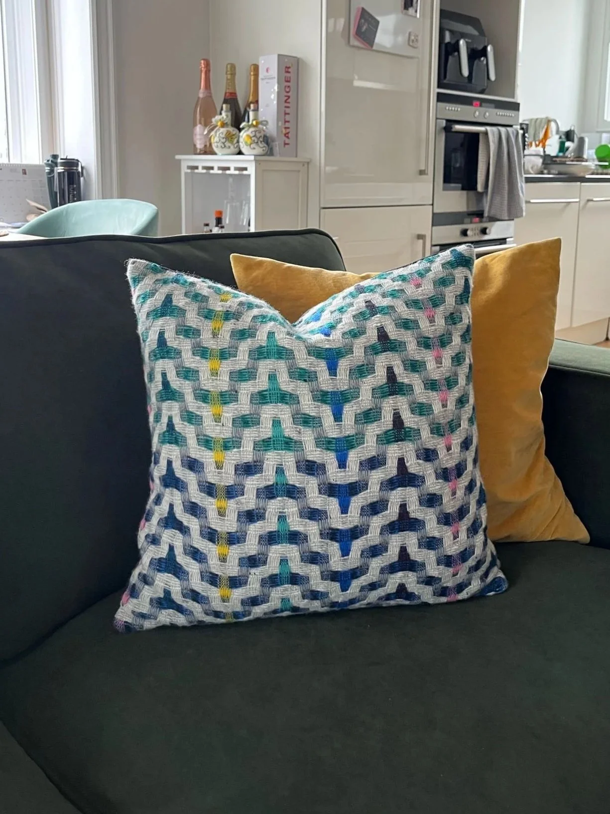 Named after the place where I explored, developed and designed the original pattern on a handloom, The Greenwich Collection pays homage to the paintings of Sonia Delaunay, an artist famed for her use of colour and abstract geometric compositions. The vitality of the colour combinations used by Delaunay inspired my designs, ensuring that I celebrated how colour can evoke a powerful emotional response, and bring joy and happiness into your home. Ultimately inspired by my travels and my love of visiting exhibitions, the Collection is a culmination of how colour, yarn and structure work together to reflect wave patterns on the sand, the shapes found in coastal architectural forms and the ever-changing play of light.